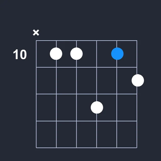 • Play a barre on the 10th fret from the 2nd string to the 5th string.