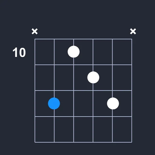 - Place the index finger on the 10th fret the D string