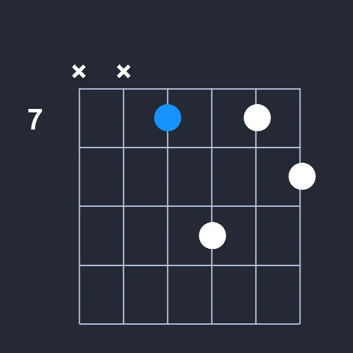 - Play a barre on the 7th fret from the 3rd string to the 5th string.