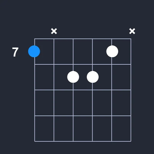 - Place the middle finger on the 7th fret the B string