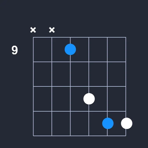 - Place the index finger on the 9th fret the D string