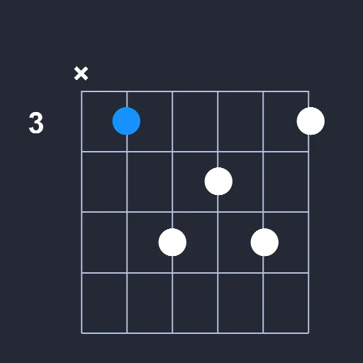 - Play a barre on the 3rd fret from the 2nd string to the 6th string.