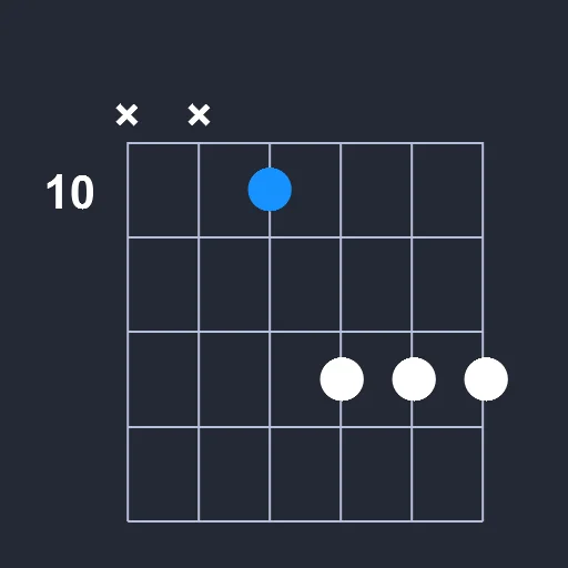 - Place the index finger on the 10th fret the D string
