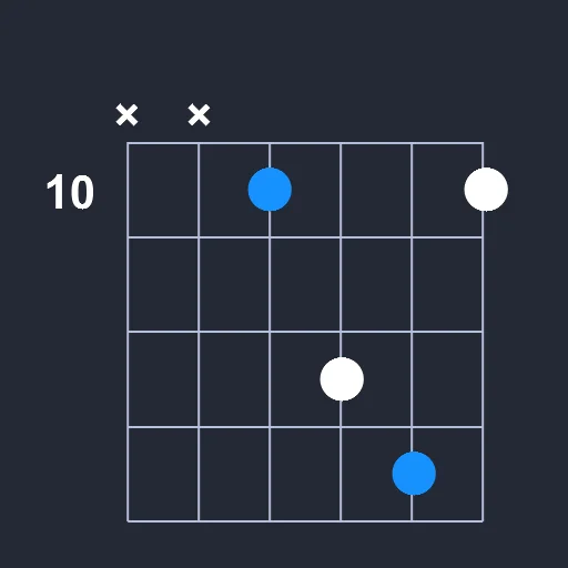 - Play a barre on the 10th fret from the 3rd string to the 6th string.