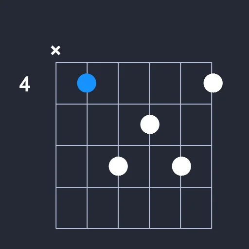 - Play a barre on the 4th fret from the 2nd string to the 6th string.