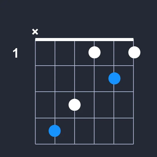 - Play a barre on the 1st fret from the 4th string to the 6th string.