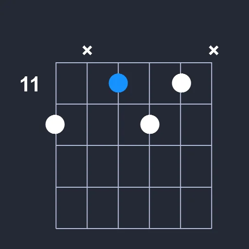 - Play a barre on the 11st fret from the 3rd string to the 5th string.