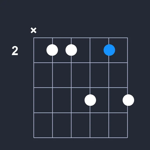 - Play a barre on the 2nd fret from the 2nd string to the 5th string.