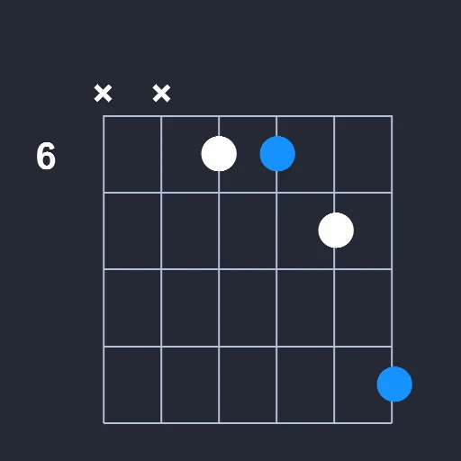 - Play a barre on the 6th fret from the 3rd string to the 4th string.