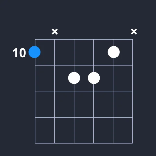 - Place the middle finger on the 10th fret the B string
