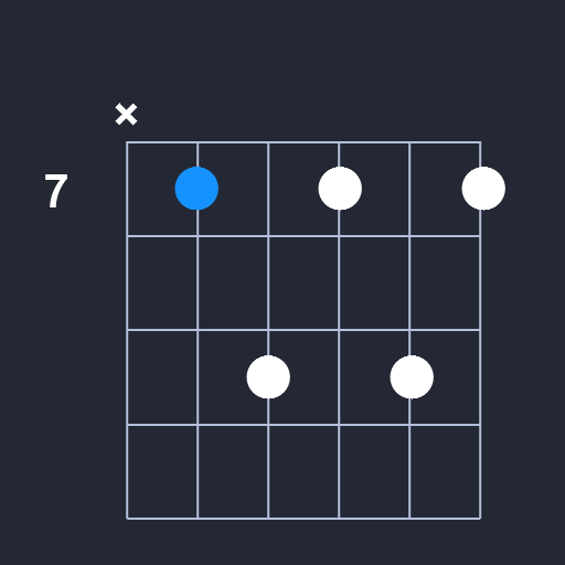 Play a barre on the 7th fret from the 2nd string to the 6th string.