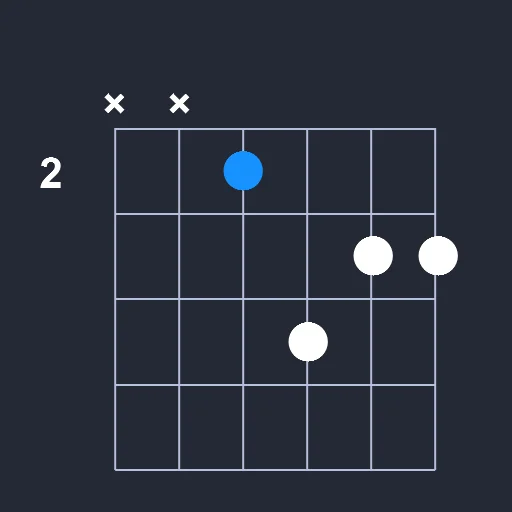 - Place the index finger on the 2nd fret the D string