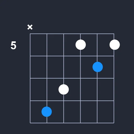 - Play a barre on the 5th fret from the 4th string to the 6th string.