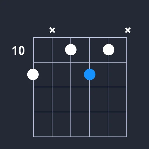 - Play a barre on the 10th fret from the 3rd string to the 5th string.