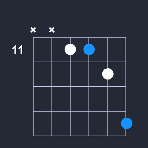 - Play a barre on the 11st fret from the 3rd string to the 4th string.