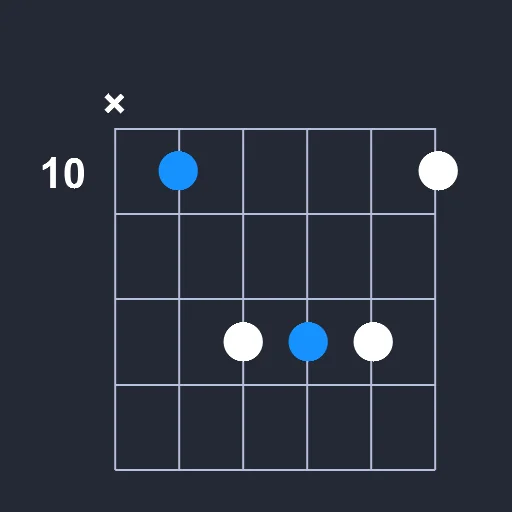 - Play a barre on the 10th fret from the 2nd string to the 6th string.