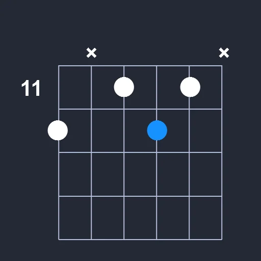 - Play a barre on the 11st fret from the 3rd string to the 5th string.