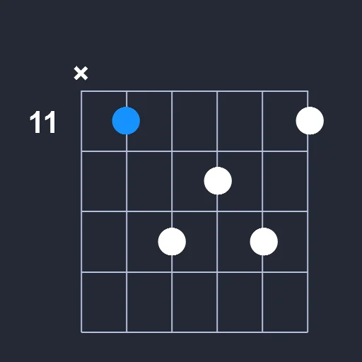 - Play a barre on the 11st fret from the 2nd string to the 6th string.