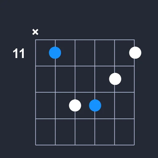- Play a barre on the 11st fret from the 2nd string to the 6th string.
